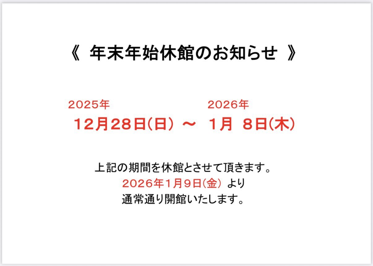 【年末年始休館日のお知らせ‼️】